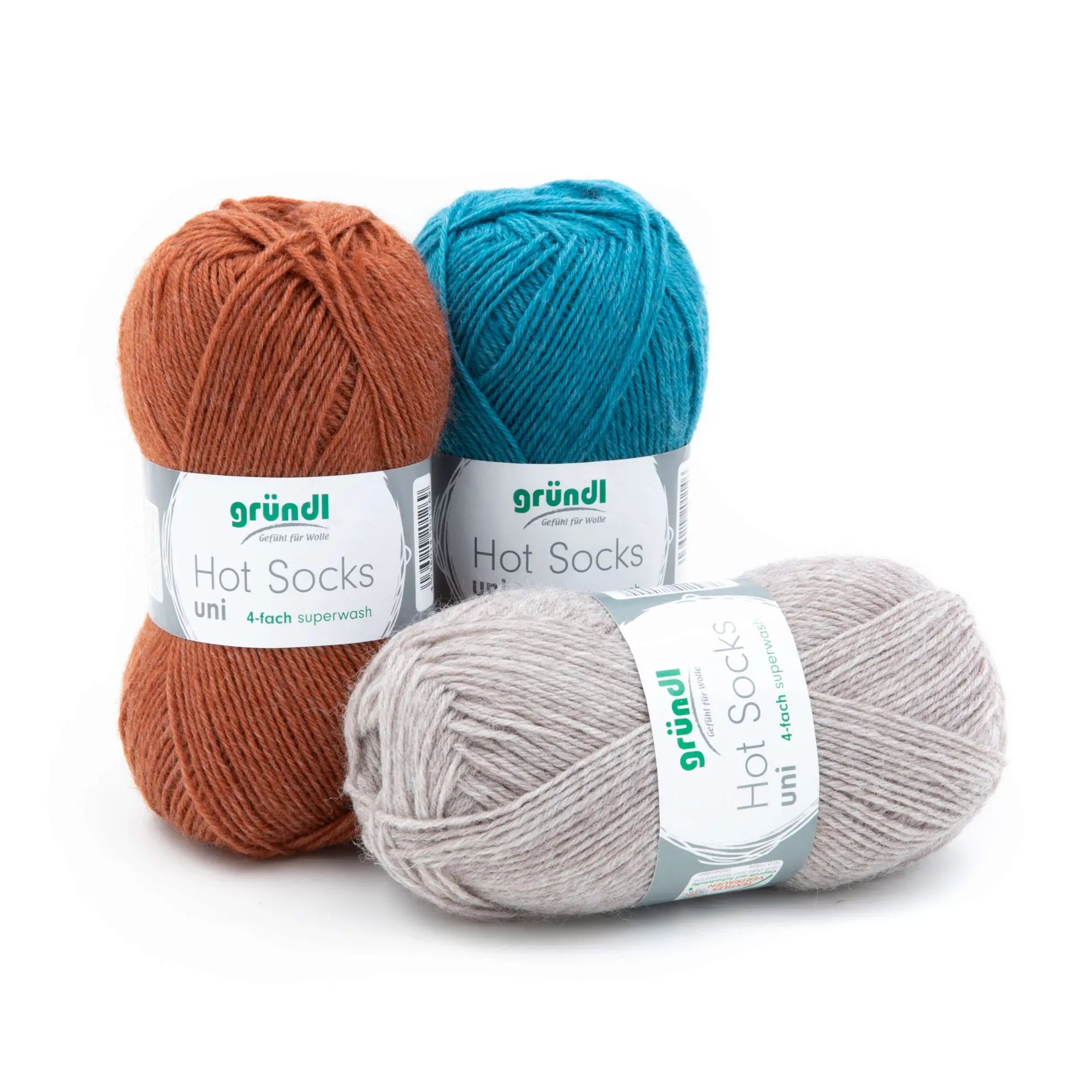 Hot Socks Uni - kojinių siūlai atveria begalę kūrybos galimybių. Galite kurti kojines su individualiomis spalvų kombinacijomis, tokiomis kaip juostelės, spalvų blokavimas ar norvegų raštai. Šie siūlai taip pat puikiai tinka kaip spalviniai akcentai spalvingoms kojinėms – tiesiog paryškinkite kulną ar pirštą viena spalva! Su plačia spalvų palete tikrai turėsite pakankamai galimybių žaisti su spalvomis! Siūlai yra malonūs liesti ir tuo pačiu tvirti. O dėka Superwash apdorojimo, savo mėgstamas kojines galėsite skalbti skalbimo mašinoje be jokių rūpesčių! Iš Hot Socks Uni galite megzti aksesuarus, tokius kaip kepurės ar pirštinės, liemenės ar megztinius.
